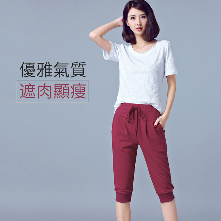 大碼顯瘦,高腰彈力塑形七分褲,舒適鬆緊腰,100%有機棉,吸濕透氣,肌膚暢快呼吸!